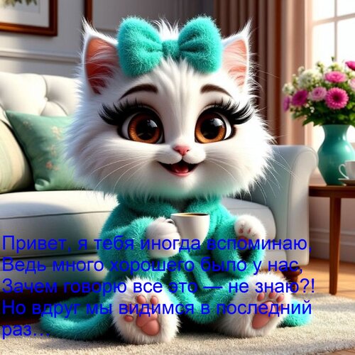 Открытка "Привет, я тебя иногда вспоминаю, ведь много хорошего было у нас, зачем говорю все это — не знаю?"