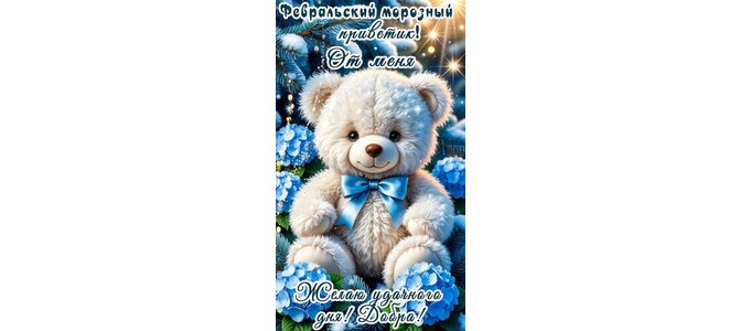 Теги:приветик, мишка, игрушка, зима, снег, цветы, ель, плюшевый мишка, удачи, добра, пожелания на каждый день, морозный приветик, февральский приветик