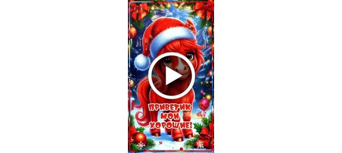 Видеооткрытка "Приветик, мои хорошие! Я Лошадка. Символ 2026 года! Мчусь к вам во весь опор на Новый год!"