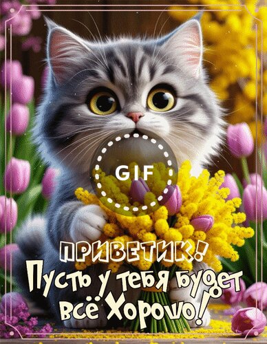 Анимированная открытка "Приветик! Пусть у тебя будет всё хорошо!"