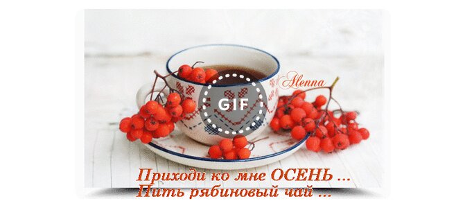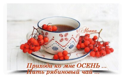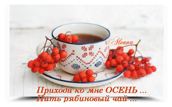 Анимированная открытка "Приходи ко мне осень пить рябиновый чай"