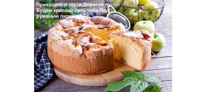 Открытка "Приходите в гости, Дорогие гости! Будем крепкий пить чаёк Под румяный пирожок."