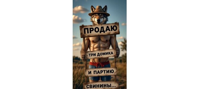 Открытка "Продаю три домика и партию свинины"
