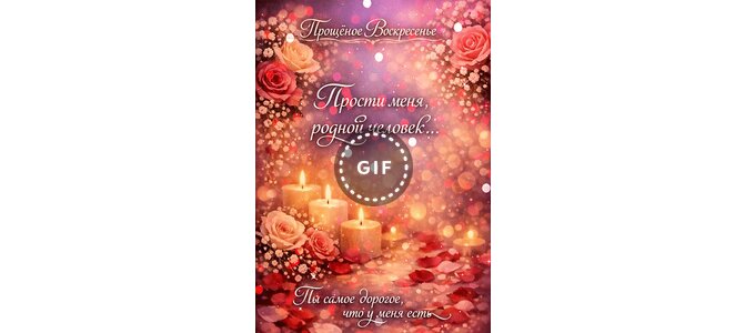 Анимированная открытка "Прощёное Воскресенье! Прости меня, родной человек... Ты самое дорогое, что у меня есть"