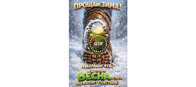 Анимированная открытка "Прощай, зима! А дальше что? А дальше Весна и пусть она пахнет счастьем!"