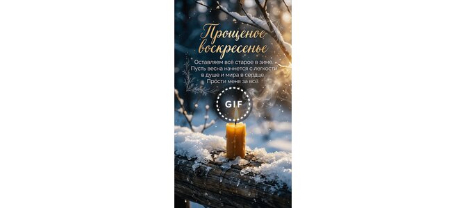 Анимированная открытка "Прощеное воскресенье. Оставляем всё старое в зиме. Пусть весна начнется с легкости в душе и мира в с"
