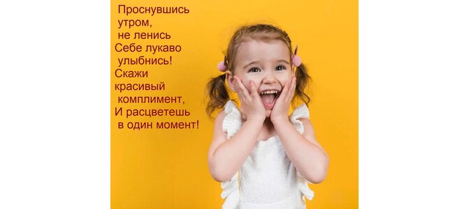 Теги:проснувшись утром, не ленись себе лукаво улыбнись скажи красивый комплимент, и расцветешь в один момент