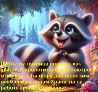 Теги:пусть эта пятница пройдет как ураган, и пролетит она как быстрое мгновенье, ты фору дай нелегким всем своим делам, храни ты на работе крепкое терпенье
