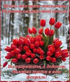Пусть эти яркие тюльпаны развеют хмурых дней печаль. Вы разрешите, я добавлю немного красок в ваш февраль!