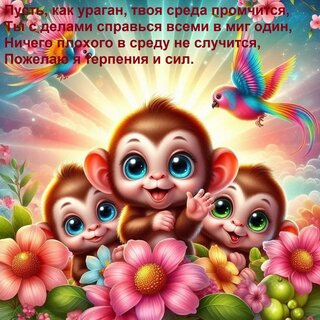 Теги:пусть, как ураган, твоя среда промчится, делами, справься, всеми, миг, один, ничего плохого в среду не случится, пожелаю я терпения и сил