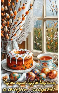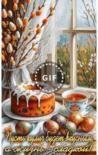 Анимированная открытка "Пусть кулич будет вкусным, а жизнь - сладкой!"