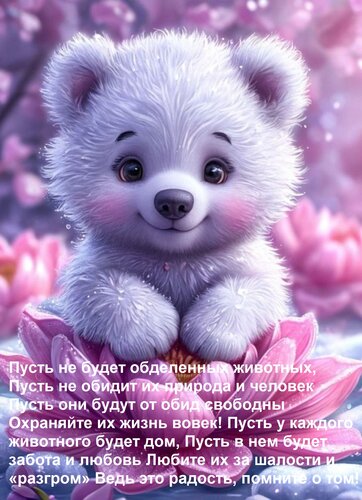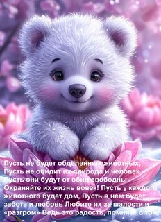 Открытка "Пусть не будет обделенных животных, пусть не обидит их природа и человек."