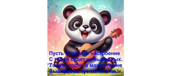 Теги:пусть отличное настроение с тобой будет на выходных танцы, гости, а может пение выбираешь тут только ты