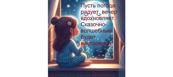 Теги:пусть погода радует, вечер вдохновляет, сказочно-волшебным будет настроенье