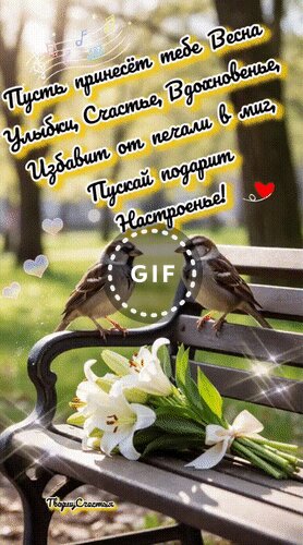 Анимированная открытка "Пусть принесет тебе Весна улыбки, счастье, вдохновенье,избавит от печали в миг, пускай подарит настр"
