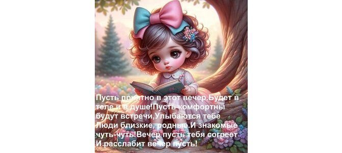 Теги:пусть приятно в этот вечер будет в теле и в душе пусть комфортны будут встречи, улыбаются тебе люди близкие, родные и знакомые чуть-чуть вечер пусть тебя согреет и расслабит вечер пусть