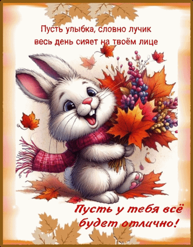 Пусть улыбка, словно лучик весь день сияет на твоём лице. Пусть у тебя всё будет отлично!