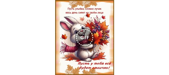 Анимированная открытка "Пусть улыбка, словно лучик, весь день сияет на твоем лице. Пусть у тебя всё будет отлично!"