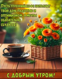 Открытка "Пусть утренний кофе наполнит твой день радостью и оптимизмом, а мечты обязательно сбудутся!"