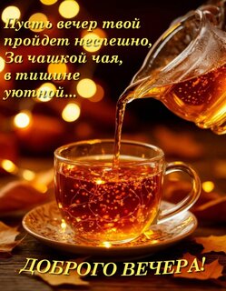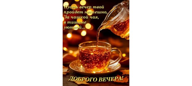 Открытка "Пусть вечер твой пройдет неспешно, За чашкой чая, в тишине уютной..."