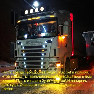 Открытка "Пусть всегда твоя дорога Будет гладкой и прямой. Чтоб любил ты, дальнобойщик, Возвращаться в дом род"