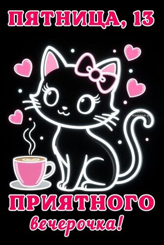 Открытка "ПЯТНИЦА,13. ПРИЯТНОГО ВЕЧЕРОЧКА!"