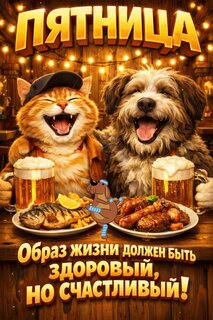 Анимированная открытка "Пятница. Образ жизни должен быть здоровый, но счастливый!"