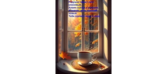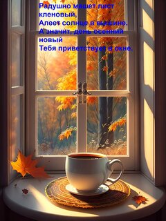 Теги:радушно машет лист кленовый, алеет солнце в вышине а значит, день осенний новый тебя приветствует в окне
