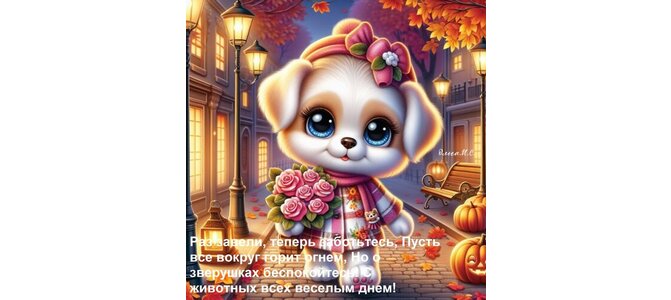 Открытка "Раз завели, теперь заботьтесь, Пусть все вокруг горит огнем, Но о зверушках беспокойтесь! С животных"