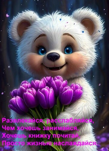 Открытка "Развлекайся, расслабляйся, чем хочешь занимайся, хочешь книжку почитай, просто жизнью наслаждайся."
