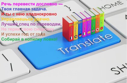 Открытка "Речь перевести дословно — твоя главная задача. И ты с нею хладнокровно управляешься удачно. "