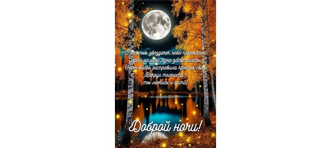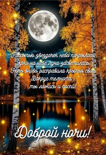 Россыпью звездочек небо покрылось, ярко на небе луна засветилась. Ночь вновь расправила крылья свои, вокруг темнота... ты ложись и поспи! Доброй ночи!