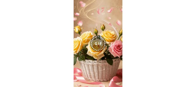 Теги:розы, цветы, анимация, гиф, корзина роз, корзина цветов, женщине, девушке, девочке, пожелания на каждый день, красивая анимация, с днем рождения