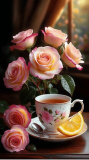 Теги:розы, чай с лимоном, цветы, гифка, анимация, красивая анимация, фрукты, пожелания на каждый день, добрый день, добрый вечер, доброе утро