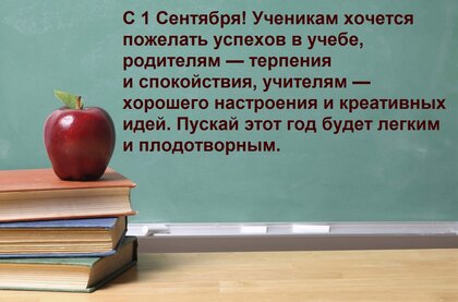 Теги:сентября, ученикам, хочется, пожелать, успехов, учебе, родителям терпения и спокойствия, учителям, хорошего, настроения, креативных, идей, пускай