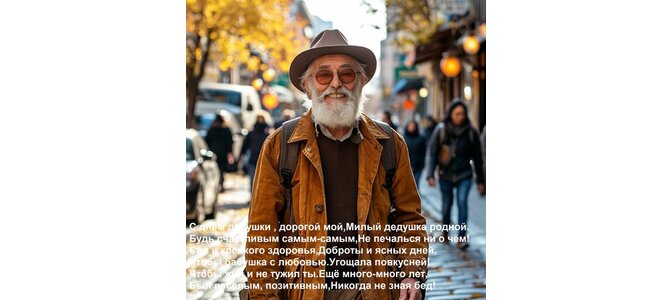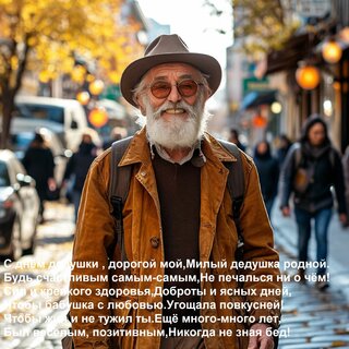 Теги:с днём дедушки, дорогой мой, милый дедушка родной будь счастливым самым-самым, не печалься ни о чём сил и крепкого здоровья, доброты и ясных дней, чтобы бабушка с любовью угощала повкусней чтобы жил и не тужил ты ещё много-много лет, был веселым, позитивным, никогда не зная бед