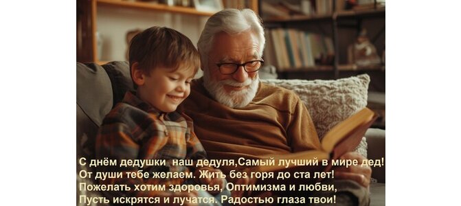 Теги:с днём дедушки наш дедуля, самый лучший в мире дед от души тебе желаем жить без горя до ста лет пожелать хотим здоровья, оптимизма и любви, пусть искрятся и лучатся радостью глаза твои