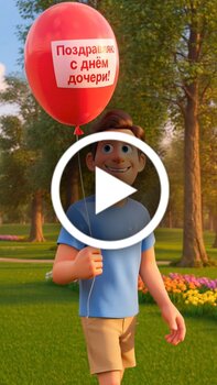 В этом ярком анимационном видео трехмерный персонаж радостно поздравляет всех с Днем дочери. Молодой человек в голубой футболке и бежевых шортах стоит в красивом солнечном парке среди деревьев и цветов. В руке он держит большой красный воздушный шар с надписью Поздравляю с днем дочери. Видео наполнено позитивными эмоциями и добрым настроением, идеально подходя для того чтобы поделиться теплым пожеланием в этот праздничный день.