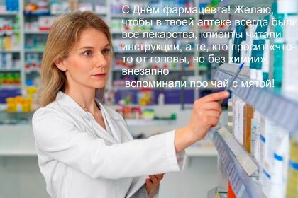 Теги:с днём фармацевта желаю, чтобы, твоей, аптеке, всегда, были, все, лекарства, клиенты читали инструкции, а те, кто просит что-то от головы, но без химии, внезапно вспоминали про чай с мятой