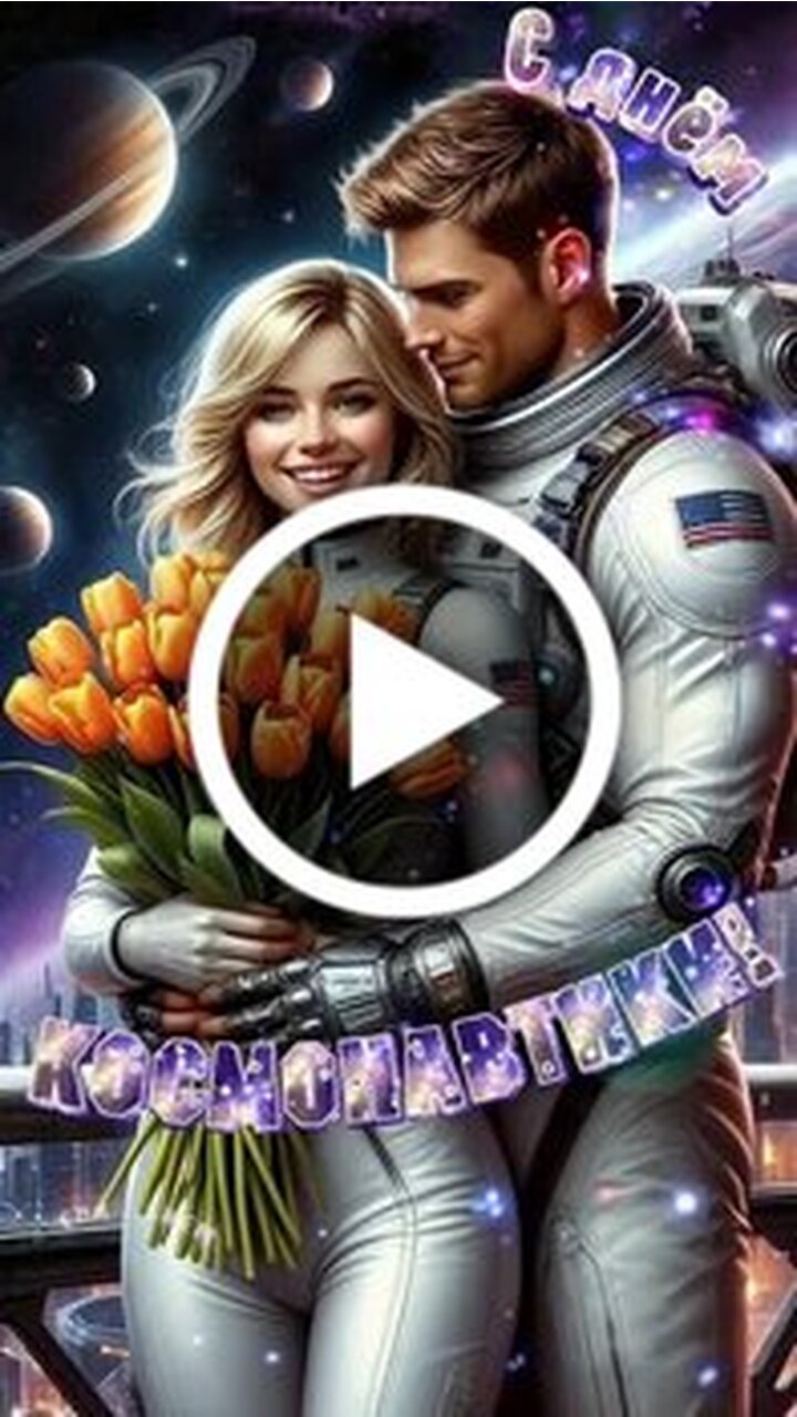 Красивое поздравительное видео к 12 апреля - Международному дню полета человека в космос. На видео изображена пара в футуристических скафандрах на фоне звездного неба и планет. Мужчина дарит женщине большой букет ярких оранжевых тюльпанов. Атмосфера видео пропитана романтикой и величием космоса. Сюжет представляет собой праздничную композицию с надписью С днем космонавта которая сменяет различные эмоциональные ракурсы пары. В финале герои смотрят вдаль на прекрасный вид вселенной. Это идеальное видео для поздравления коллег друзей и близких с этим важным праздником.