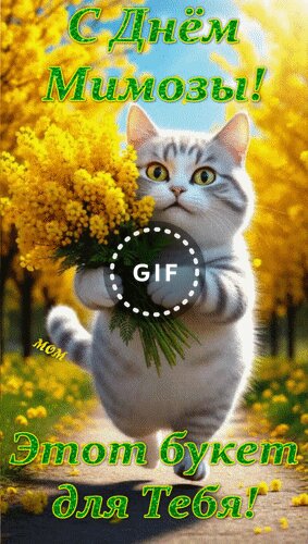 Анимированная открытка "С Днём Мимозы! Этот букет для Тебя!"