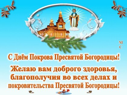 С днём Покрова Пресвятой Богородицы! Желаю вам доброго здоровья, благополучия во всех делах и покровительства Пресвятой Богородицы!