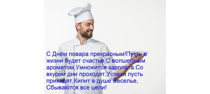 Открытка "С Днём повара прекрасным! Пусть в жизни будет счастье, С волшебным ароматом Умножится зарплата. Со в"