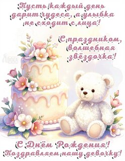 Теги:с днём рождения дочери, с днём рождения, дочери, мишка, торт, пожелания на каждый день, поздравляем нашу девочку, улыбок и чудес, девочке, ребенку