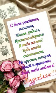 Открытка "С днём рождения, мамочка, милая, родная. Крепкого здоровья я тебе желаю"