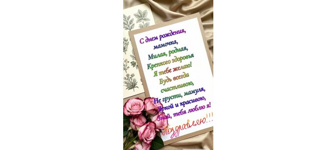 С днем рождения, мамочка, милая, родная, крепкого здоровья я тебе желаю! Будь всегда счастливой, не грусти, мамуля, яркой и красивою, знай, тебя люблю я! Поздравляю!