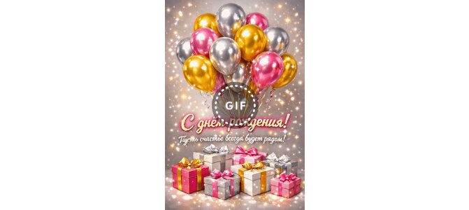 Анимированная открытка "С Днём Рождения! Пусть счастье всегда будет рядом!"