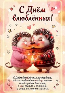 С Днём влюблённых! С Днем влюблённых поздравляю, тёплых чувств от сердца желаю, чтобы рядом был тот, с кем светло и спокойно, и глаза сияют от счастья.