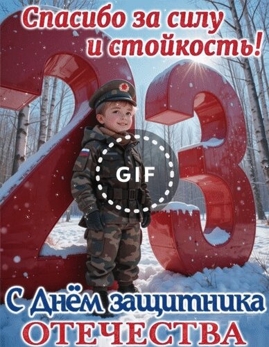 Анимированная открытка "С днём защитника Отечества. Спасибо за силу и стойкость."