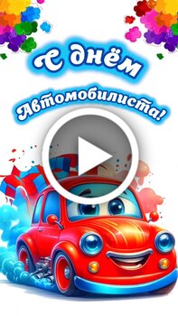 Видеооткрытка "С Днем автомобилиста! Поздравляю! Легких дорог, по жизни успеха, горит светофор лишь зеленого цвета."